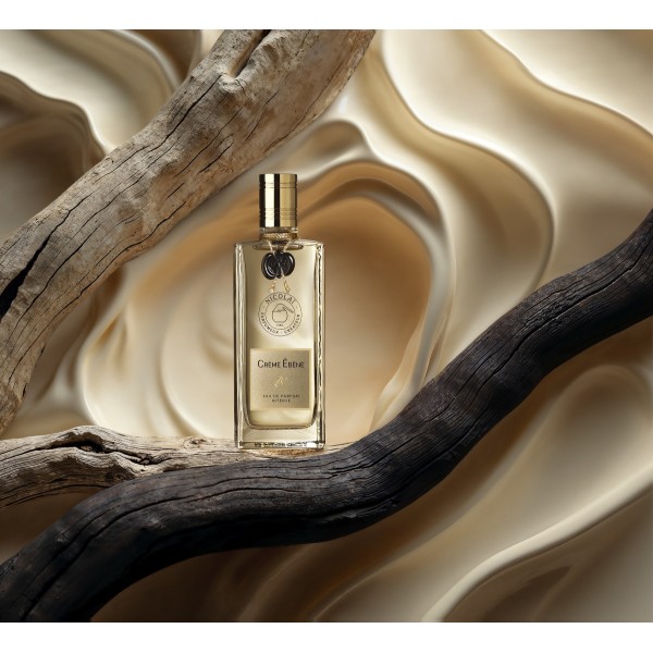 Parfums de Nicolai Crème Ébène este un parfum incantator care imbina puterea maiestuoasa a lemnului pretios cu dulceata captivanta a notelor cremoase evidentiate de piele si condimente. Un buchet de condimente, cardamom, chimion si sofran tese o aura captivanta si misterioasa care se deschide spre un suflet lemnos ancorat de eleganta nobila a cedrului si cu o nota inmuiata de generozitatea dulce si catifelata a curmalelor Medjool.